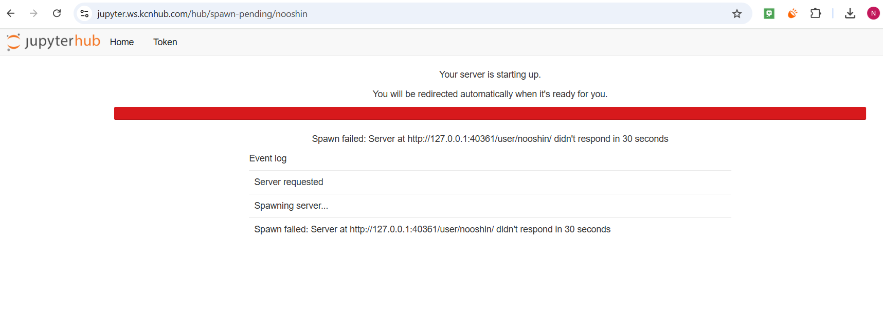 Spawn failed: Server at http://127.0.0.1:46297/user/nooshin/ didn't respond in 30 seconds